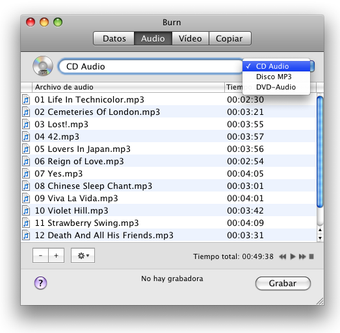 El programa ofrece varias opciones de personalización, permitiendo a los usuarios ajustar la velocidad de grabación y seleccionar diferentes formatos de disco. Burn es ideal para aquellos que buscan una solución eficaz y sin costo para sus necesidades de grabación en Mac, haciendo de esta herramienta una opción útil y accesible para usuarios de todos los niveles.